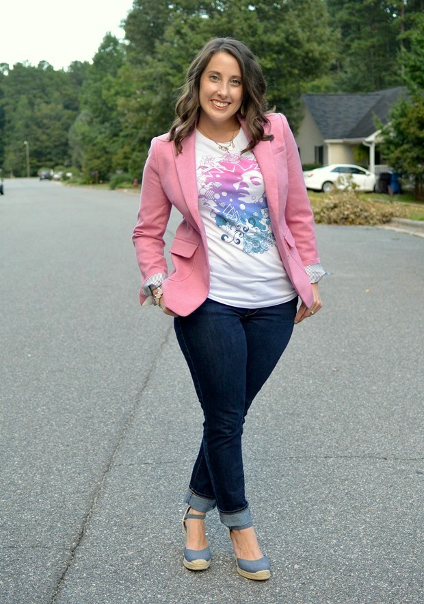 I was drawn to the colors in this one; they’re beautiful and make the tee so versatile because I can wear it with a range of cardigans and blazers.